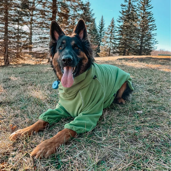 Absolutely! The Cozy Hugger Jacket is made from high-quality, insulating polar fleece material, ensuring your dog stays warm and comfortable during cooler weather. Its design allows for free movement, making it perfect for active dogs.