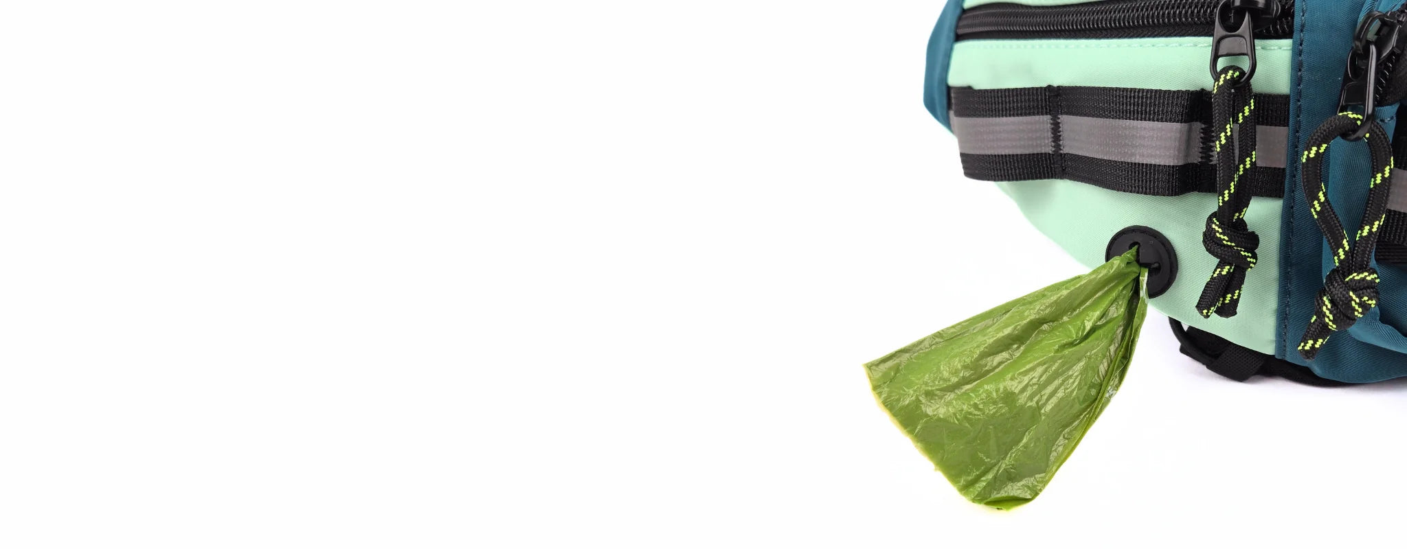 • Poop Bags, Always at Hand — A sleek, built-in dispenser in the side pocket means no more dangling pods or fumbling when you need a bag. Just pull and go.