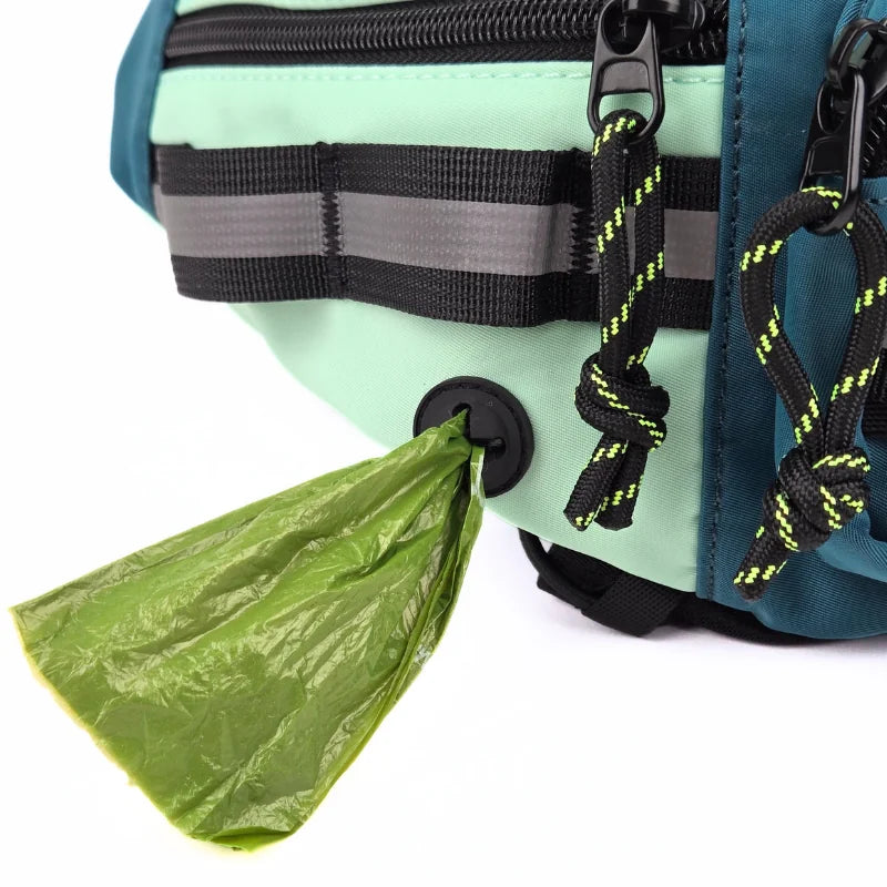 • Built-in Poop Bag Dispenser: Discreetly integrated into the side pocket for quick, one-hand pulls — no dangling pods.