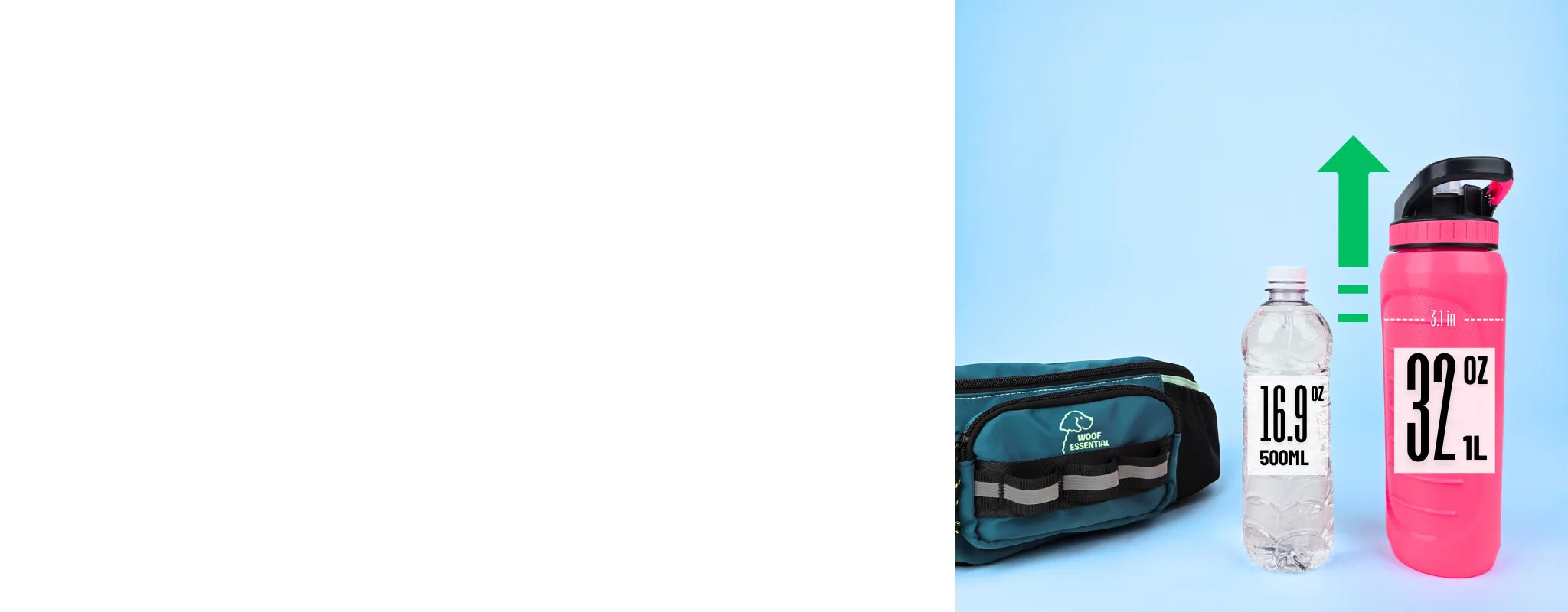 • More Room for Hydration — The bottom holder isn’t just for a slim bottle anymore. It now fits bottles up to 32 oz (≈1 L), so you can carry enough water for you and your pup without the bounce.